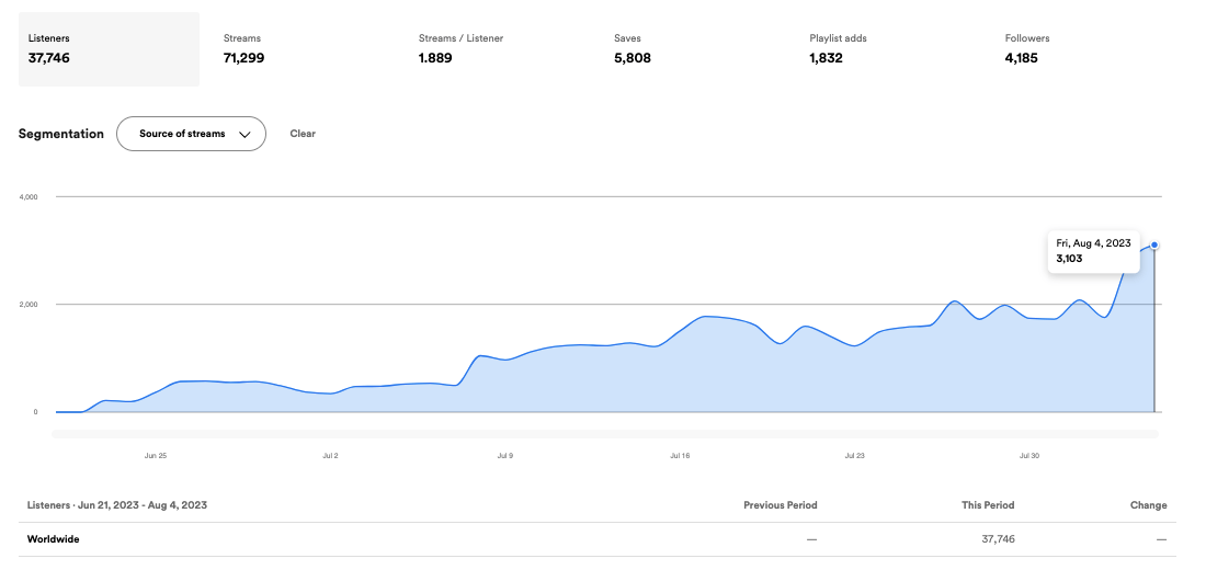 Here are some of the numbers we achieved for this artist since the release last year: